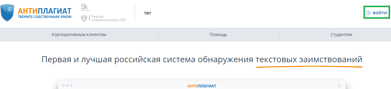 Для работы с системой «Антиплагиат» достаточно открыть браузер и указать в адресной строке адрес веб-сайта сервиса.
